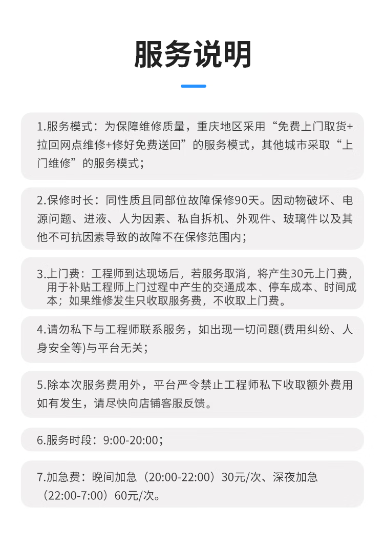 上门服务 预付款家电维修上门服务