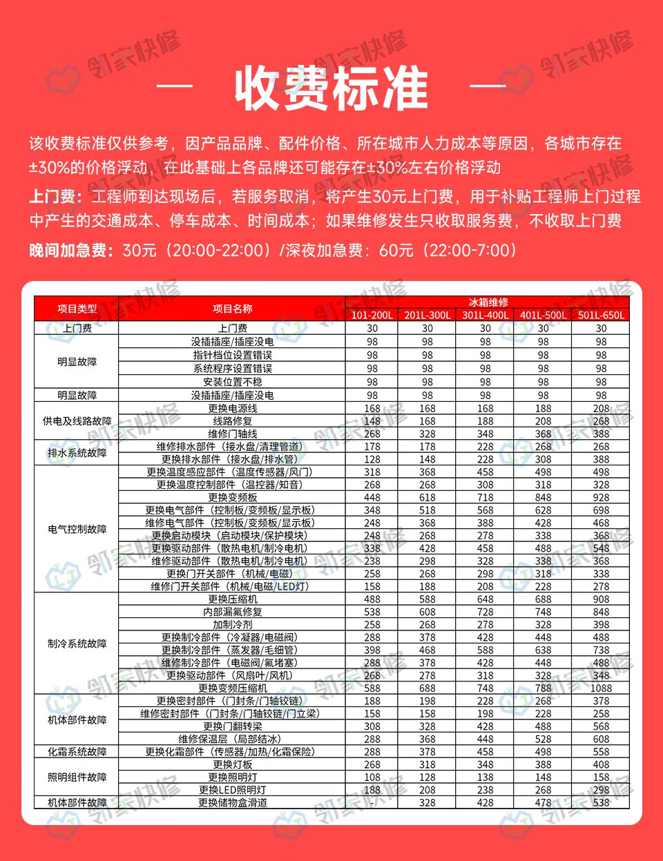 冰箱维修-预付款